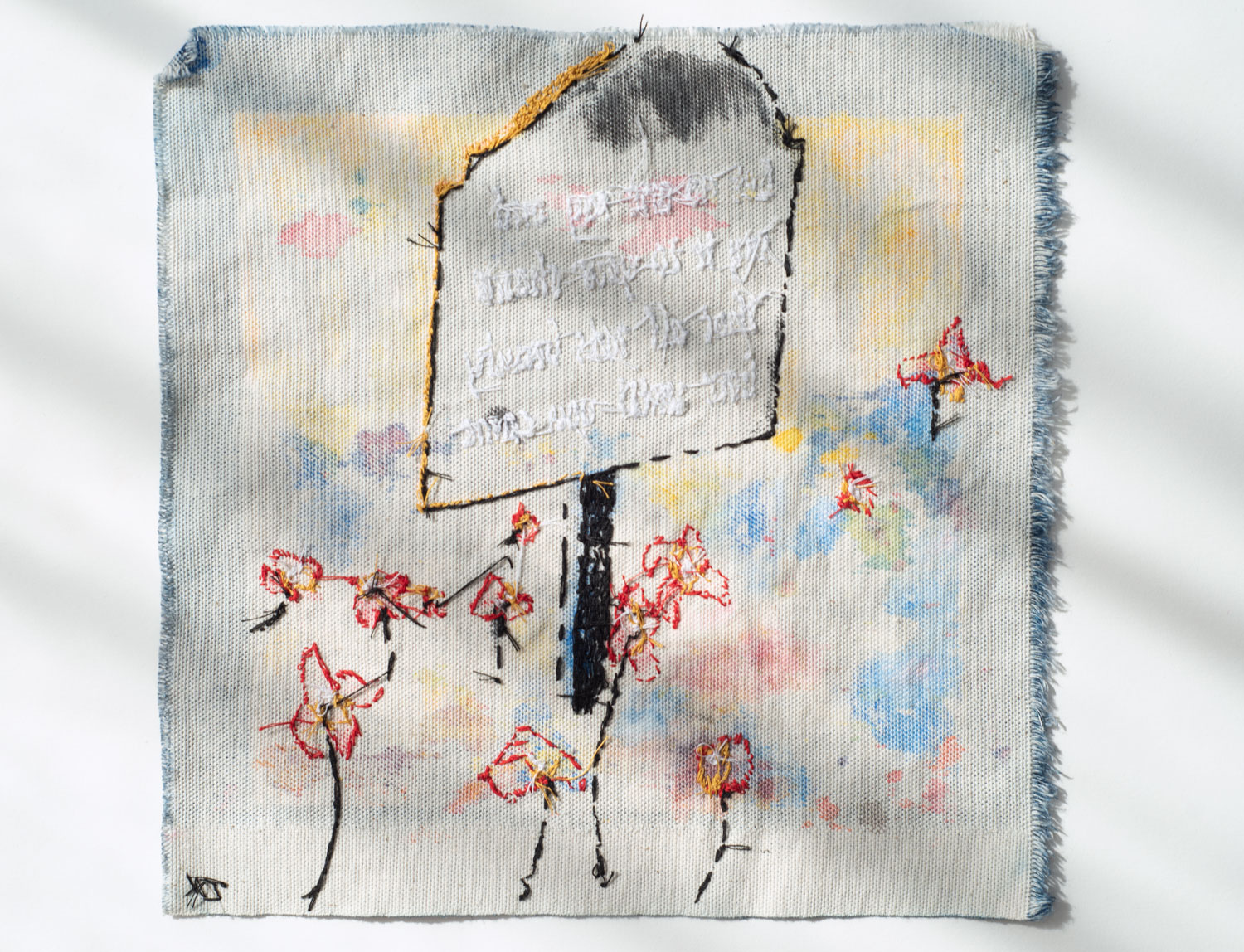 Cyanotypes on linen with paint and embroidery by Wren Krisztin.